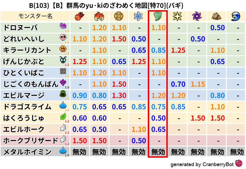 • 最高系統出現率:一番出現率の高いモンスターの系統、こころドロップ率アップの参考に!