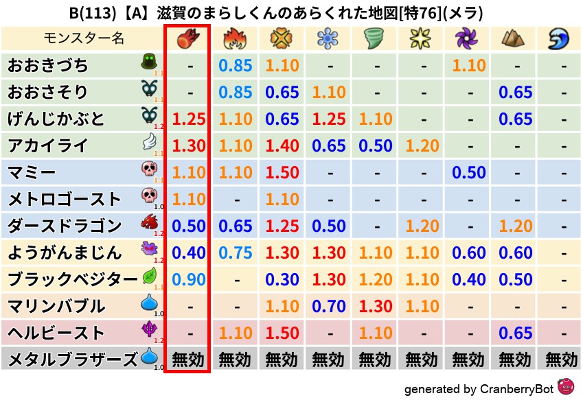 メラ(13%) - 超耐性・弱耐性なし