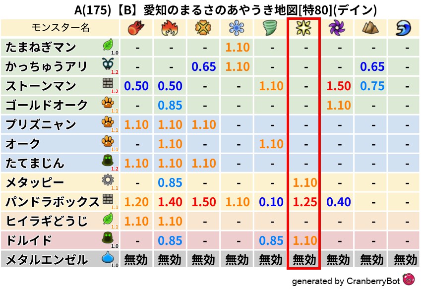 • クランベリー置換率:大量発生モンスター別の順位、最高置換率の地図は人気が高い