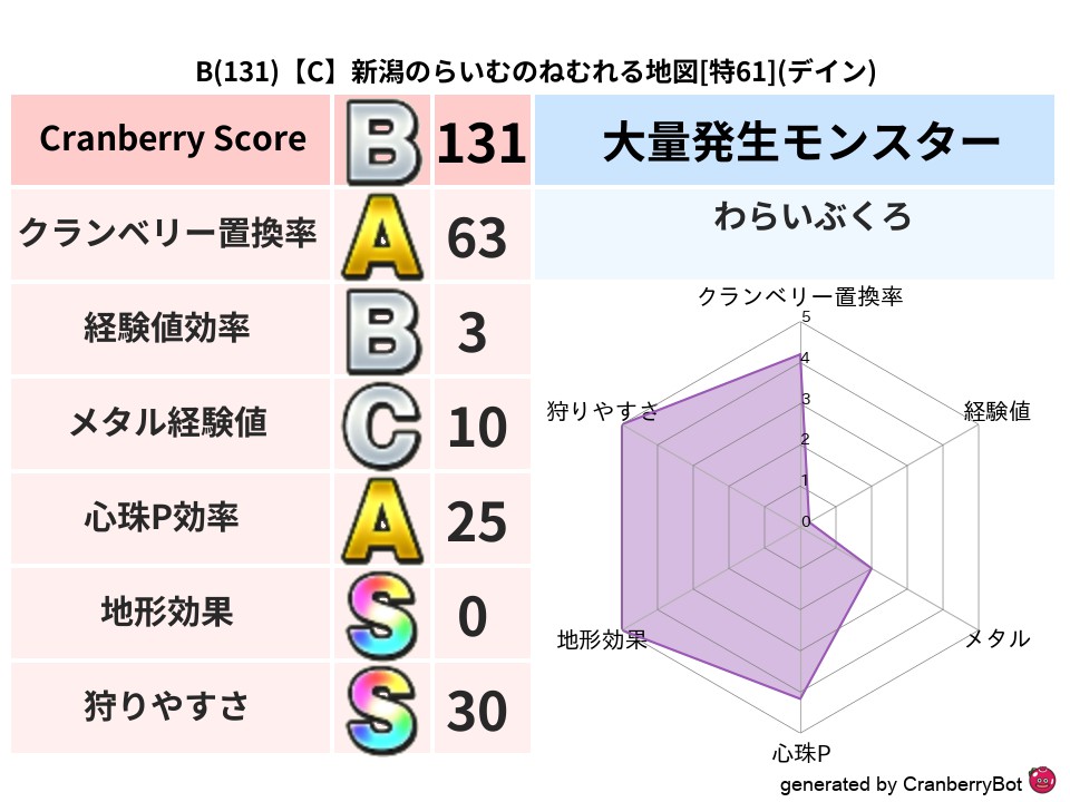 • クランベリースコア:これまで判定した地図での順位、上位100位はかなりレア✨