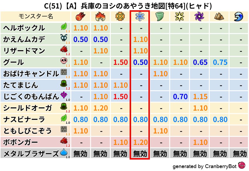 • クランベリー置換率:大量発生モンスター別の順位、最高置換率の地図は人気が高い