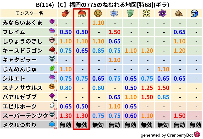 • 最高系統出現率:一番出現率の高いモンスターの系統、こころドロップ率アップの参考に!