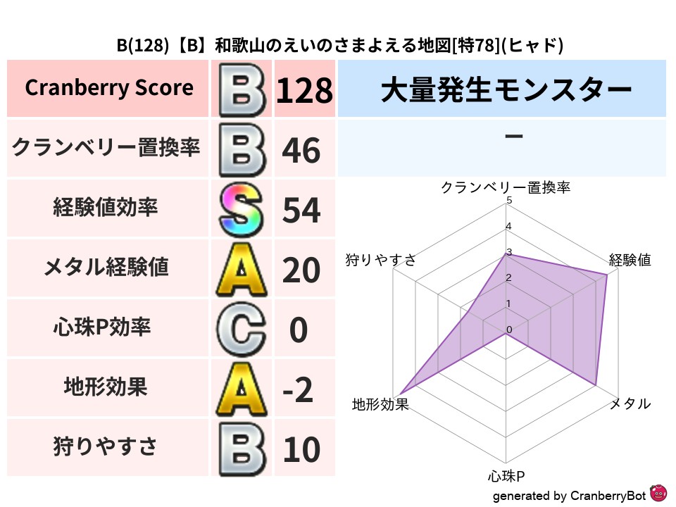 • クランベリー置換率:大量発生モンスター別の順位、最高置換率の地図は人気が高い