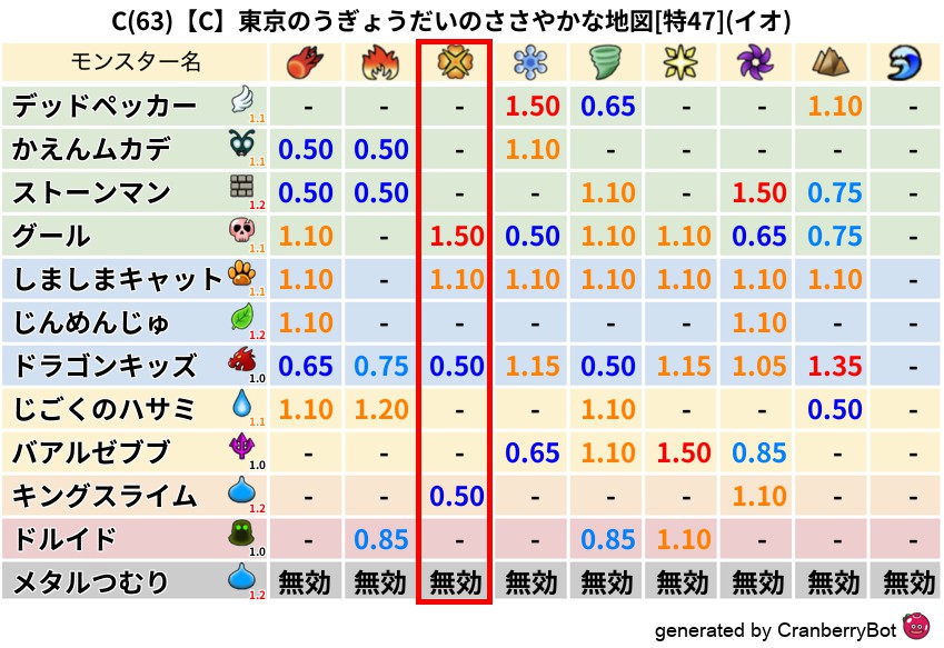 • 心珠P効率:各モンスターの出現率×Dランクの心珠P