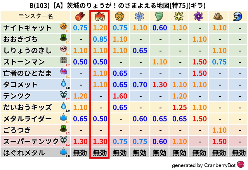 - 超耐性・弱耐性なし:ドルマ