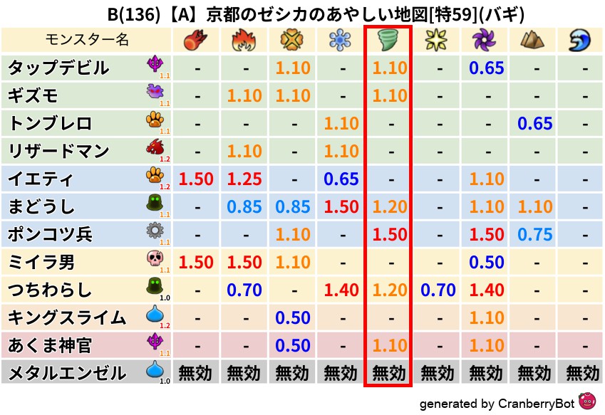 • クランベリー置換率:大量発生モンスター別の順位、最高置換率の地図は人気が高い