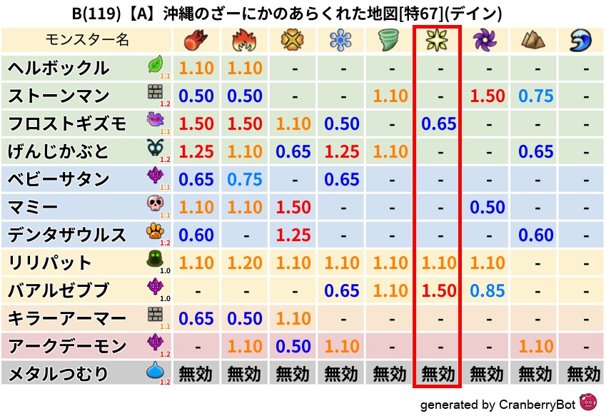• クランベリー置換率:大量発生モンスター別の順位、最高置換率の地図は人気が高い