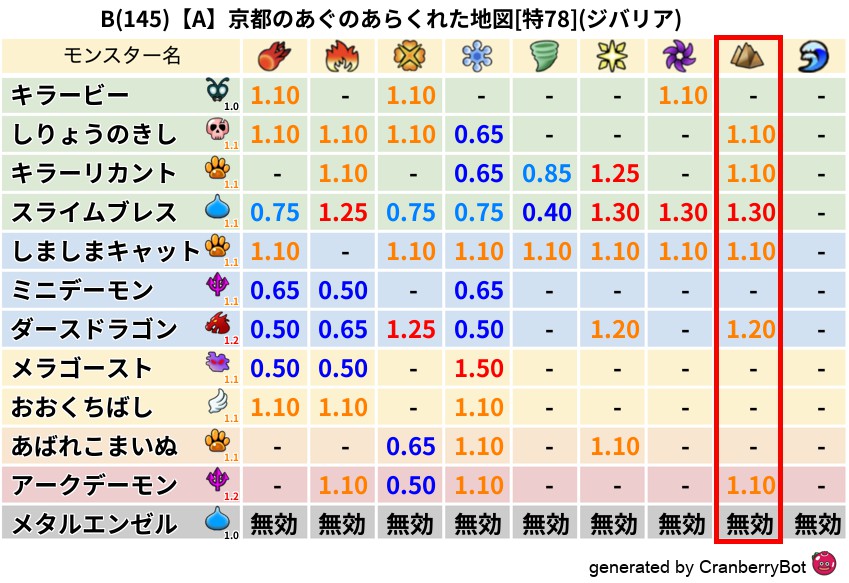 • クランベリー置換率:大量発生モンスター別の順位、最高置換率の地図は人気が高い