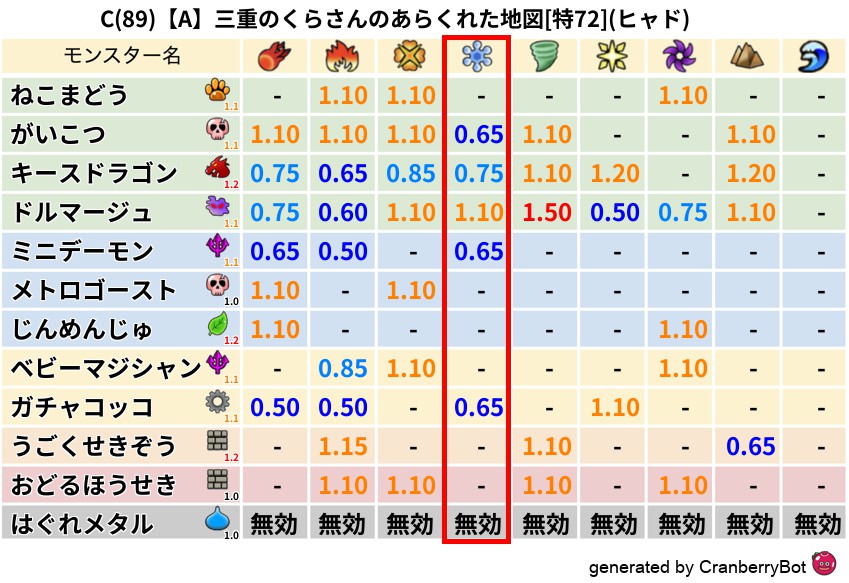 ヒャド(56%) - 超耐性・弱耐性なし