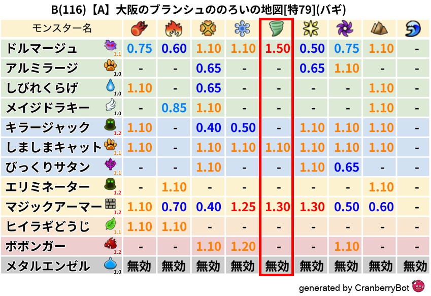 • クランベリー置換率:大量発生モンスター別の順位、最高置換率の地図は人気が高い