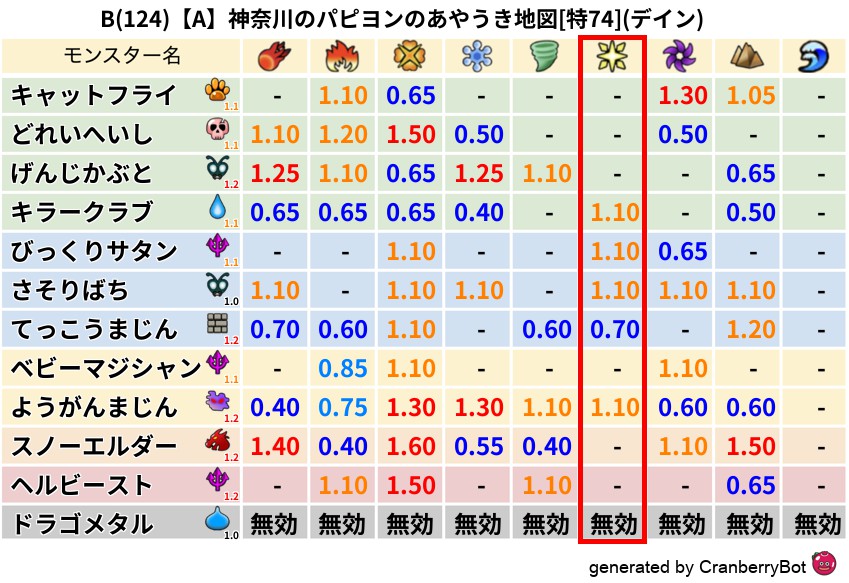 • 最高系統出現率:一番出現率の高いモンスターの系統、こころドロップ率アップの参考に!