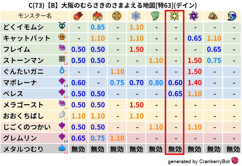 • クランベリー置換率:大量発生モンスター別の順位、最高置換率の地図は人気が高い