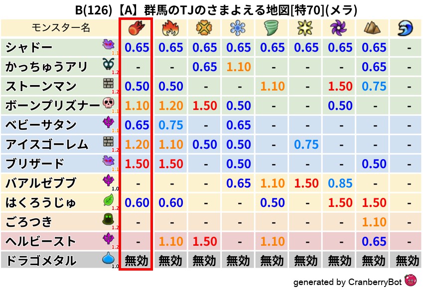• 最高系統出現率:一番出現率の高いモンスターの系統、こころドロップ率アップの参考に!