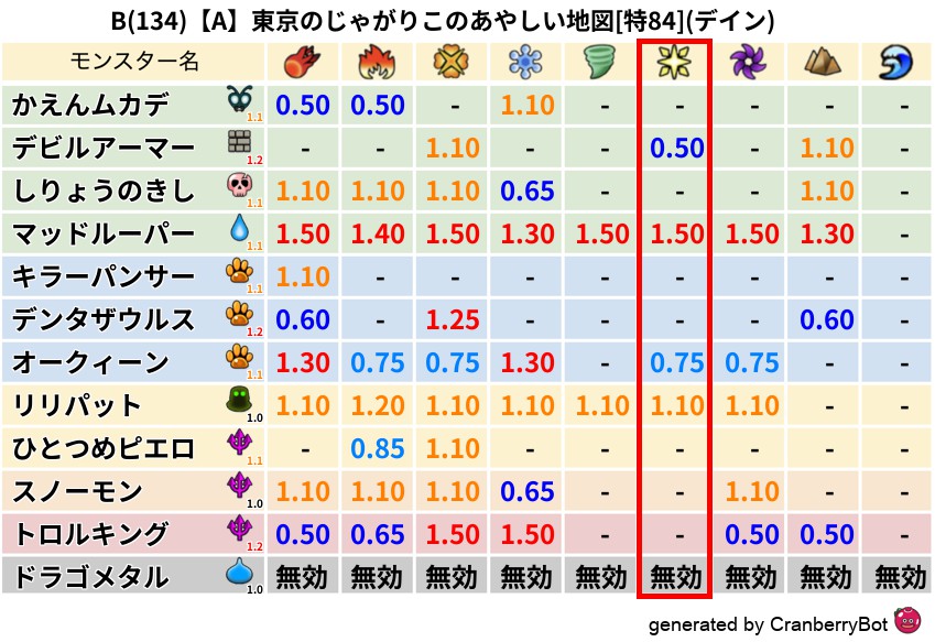 デイン(38%) - 超耐性・弱耐性なし