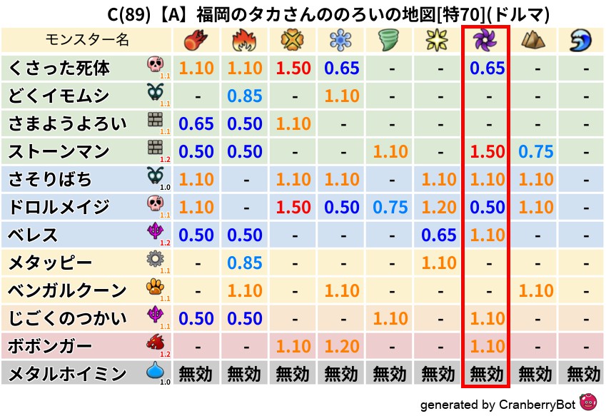 ドルマ(52%) - 超耐性・弱耐性なし