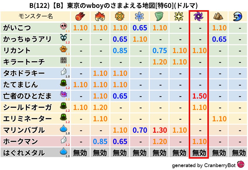 • 最高系統出現率:一番出現率の高いモンスターの系統、こころドロップ率アップの参考に!