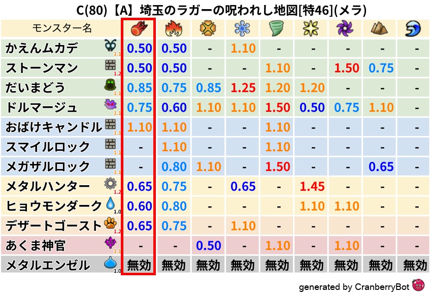 • 最高系統出現率:一番出現率の高いモンスターの系統、こころドロップ率アップの参考に!