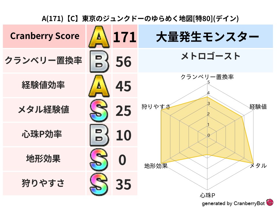 • クランベリースコア:これまで判定した地図での順位、上位100位はかなりレア✨