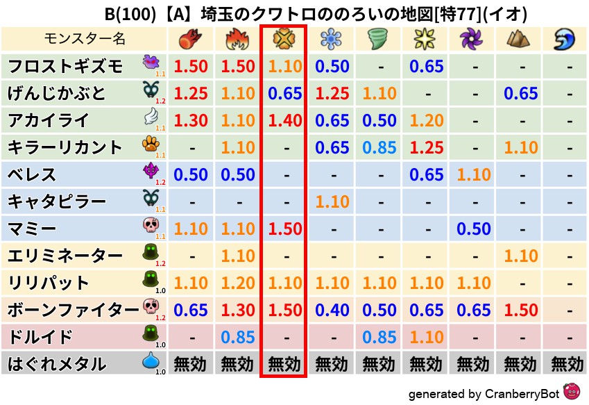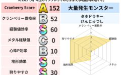 • クランベリー置換率:大量発生モンスター別の順位、最高置換率の地図は人気が高い