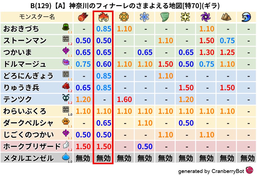 • 最高系統出現率:一番出現率の高いモンスターの系統、こころドロップ率アップの参考に!
