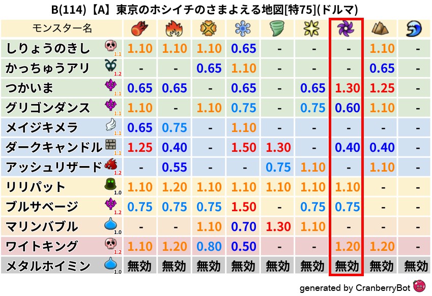 • 最高系統出現率:一番出現率の高いモンスターの系統、こころドロップ率アップの参考に!