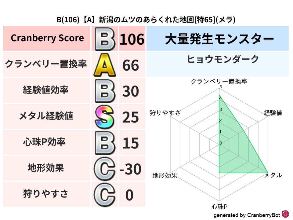 - クランベリースコア:106