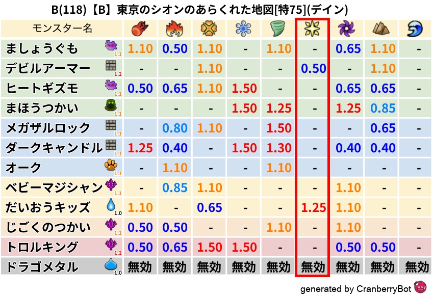 デイン(38%) - 超耐性・弱耐性なし