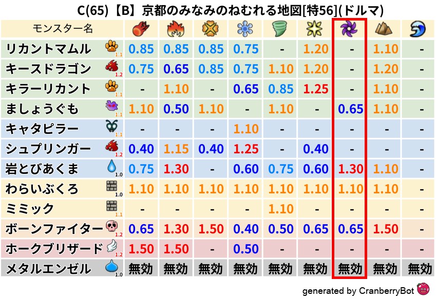 • 最高系統出現率:一番出現率の高いモンスターの系統、こころドロップ率アップの参考に!