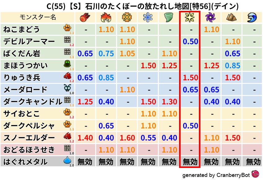 デイン(76%) - 超耐性・弱耐性なし