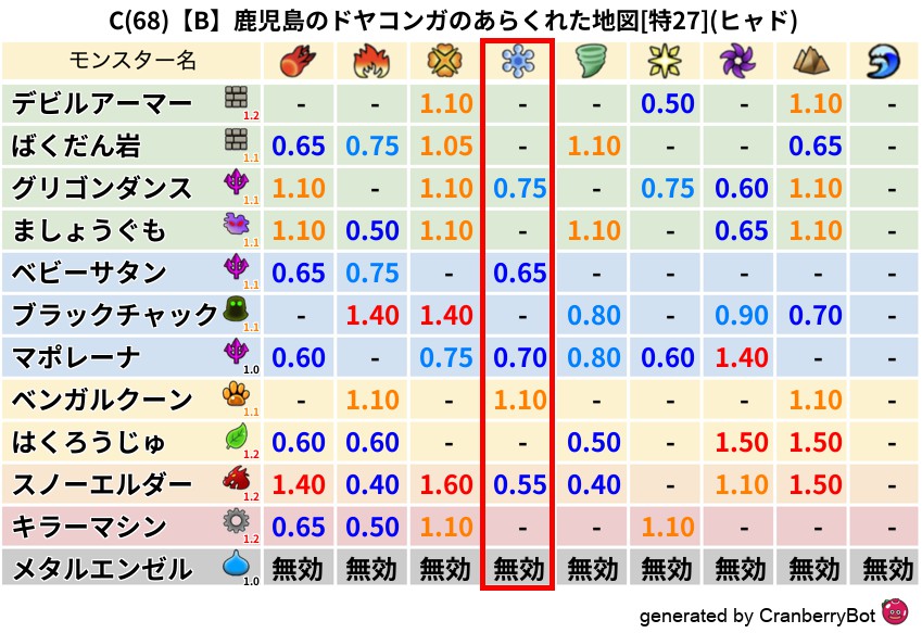 • クランベリー置換率:大量発生モンスター別の順位、最高置換率の地図は人気が高い