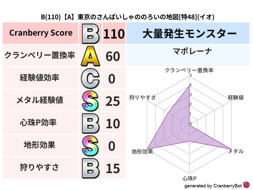 • クランベリースコア:これまで判定した地図での順位、上位100位はかなりレア✨
