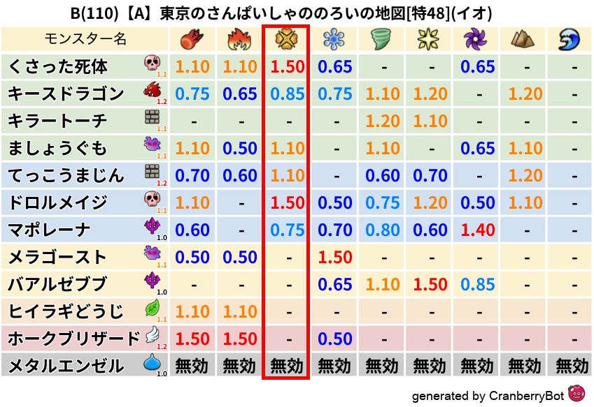 • クランベリー置換率:大量発生モンスター別の順位、最高置換率の地図は人気が高い