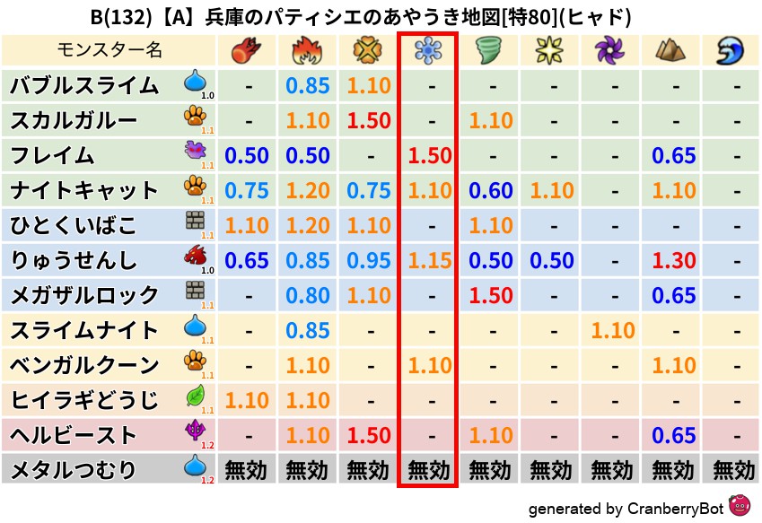 ヒャド(0%) - 超耐性・弱耐性なし