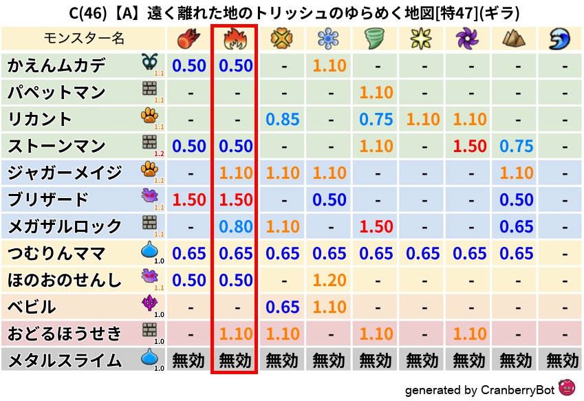 • クランベリー置換率:大量発生モンスター別の順位、最高置換率の地図は人気が高い