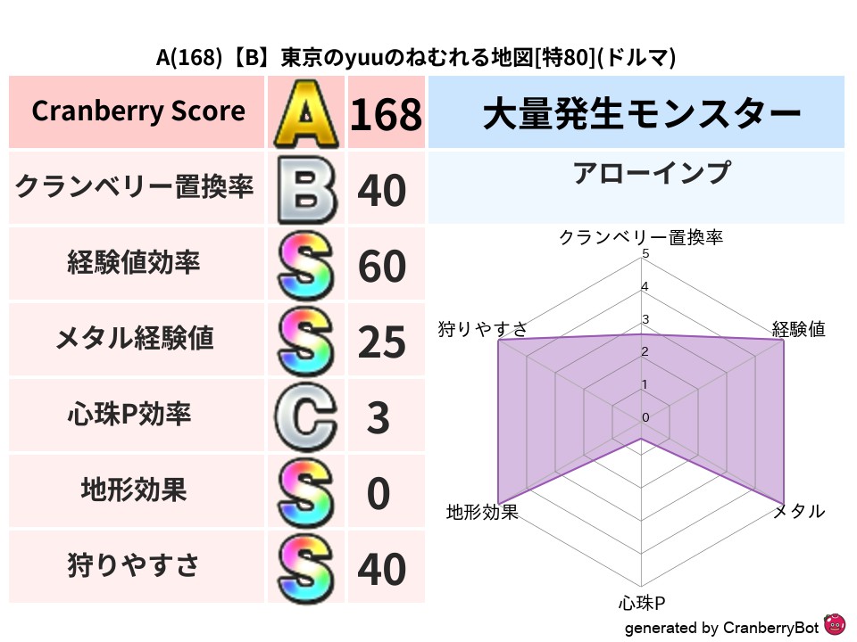 • クランベリースコア:これまで判定した地図での順位、上位100位はかなりレア✨