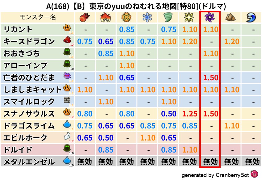 • 最高系統出現率:一番出現率の高いモンスターの系統、こころドロップ率アップの参考に!