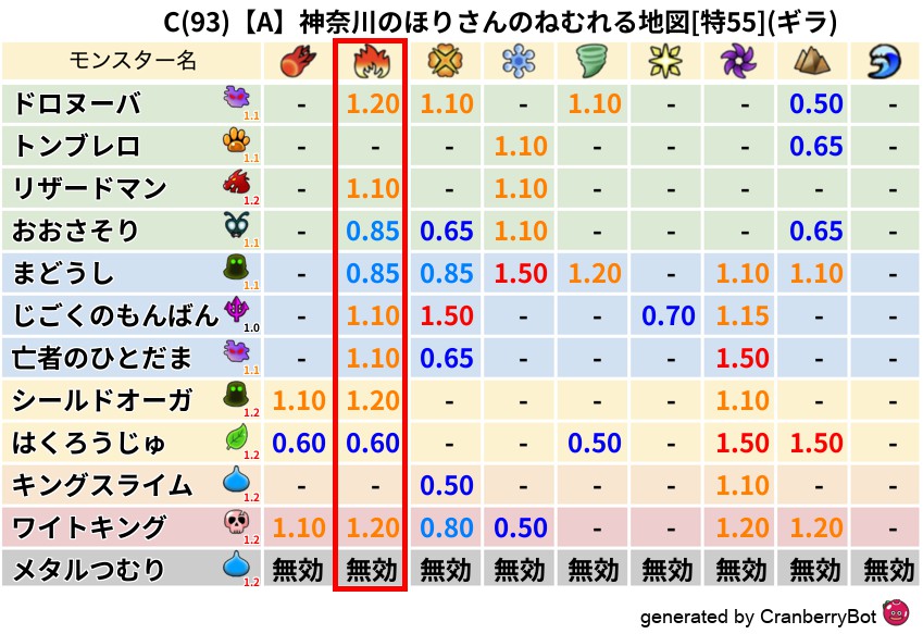 • 最高系統出現率:一番出現率の高いモンスターの系統、こころドロップ率アップの参考に!