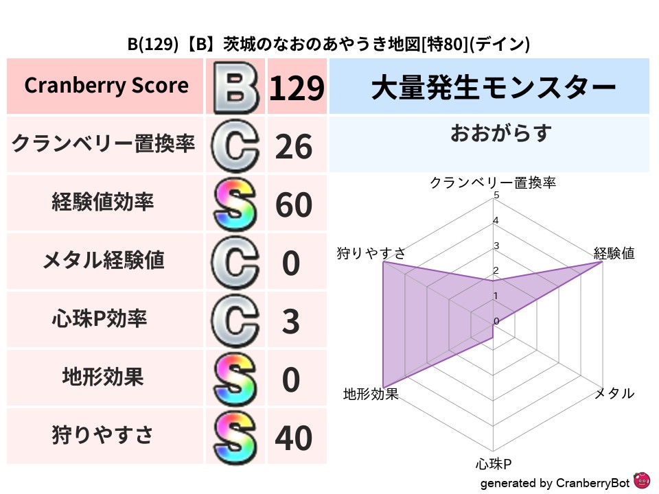 • クランベリースコア:これまで判定した地図での順位、上位100位はかなりレア✨