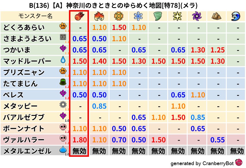 メラ(77%) - 超耐性・弱耐性なし