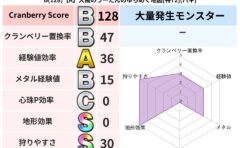 • クランベリー置換率:大量発生モンスター別の順位、最高置換率の地図は人気が高い