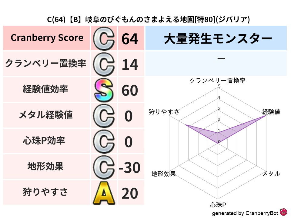 • クランベリースコア:これまで判定した地図での順位、上位100位はかなりレア✨