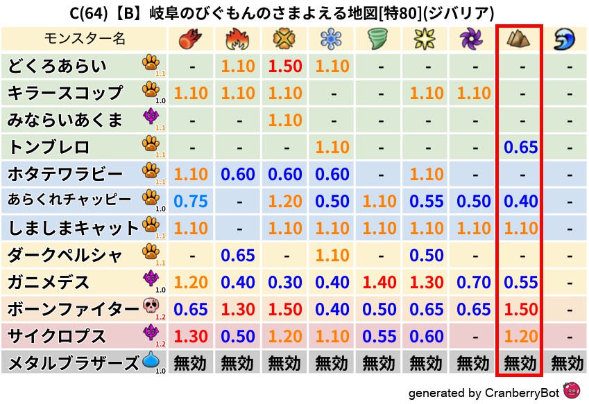 • クランベリー置換率:大量発生モンスター別の順位、最高置換率の地図は人気が高い