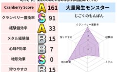 • クランベリー置換率:大量発生モンスター別の順位、最高置換率の地図は人気が高い