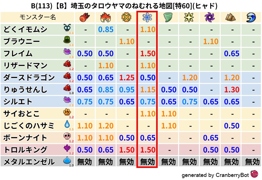 • クランベリー置換率:大量発生モンスター別の順位、最高置換率の地図は人気が高い