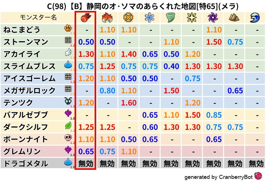 • 最高系統出現率:一番出現率の高いモンスターの系統、こころドロップ率アップの参考に!