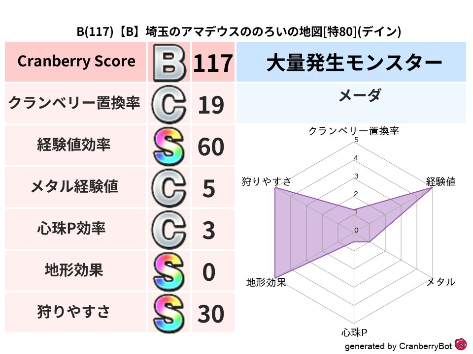 • クランベリースコア:これまで判定した地図での順位、上位100位はかなりレア✨