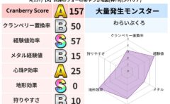 • クランベリー置換率:大量発生モンスター別の順位、最高置換率の地図は人気が高い
