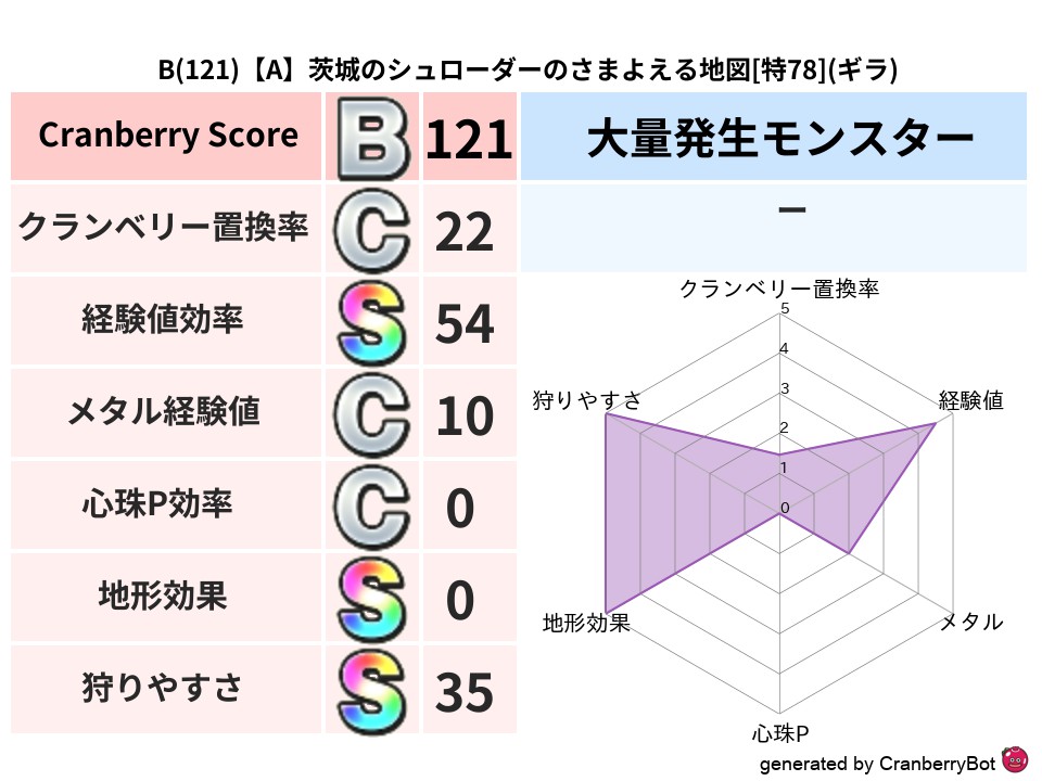 • クランベリースコア:これまで判定した地図での順位、上位100位はかなりレア✨