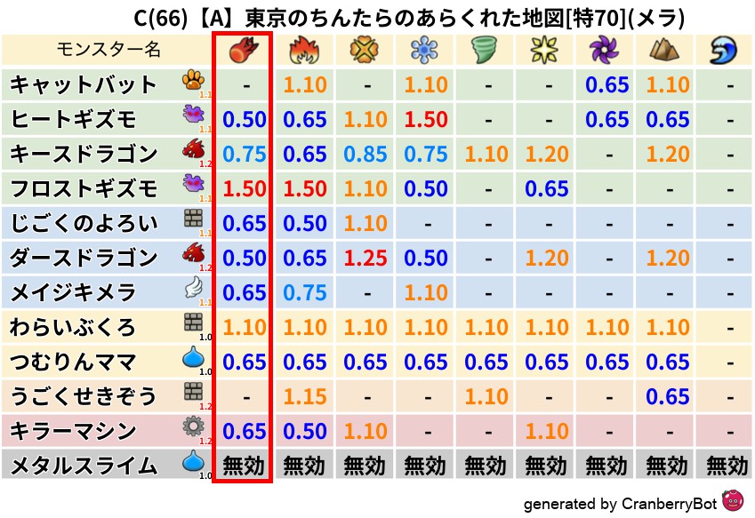 • 最高系統出現率:一番出現率の高いモンスターの系統、こころドロップ率アップの参考に!
