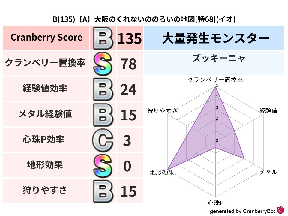 • クランベリースコア:これまで判定した地図での順位、上位100位はかなりレア✨